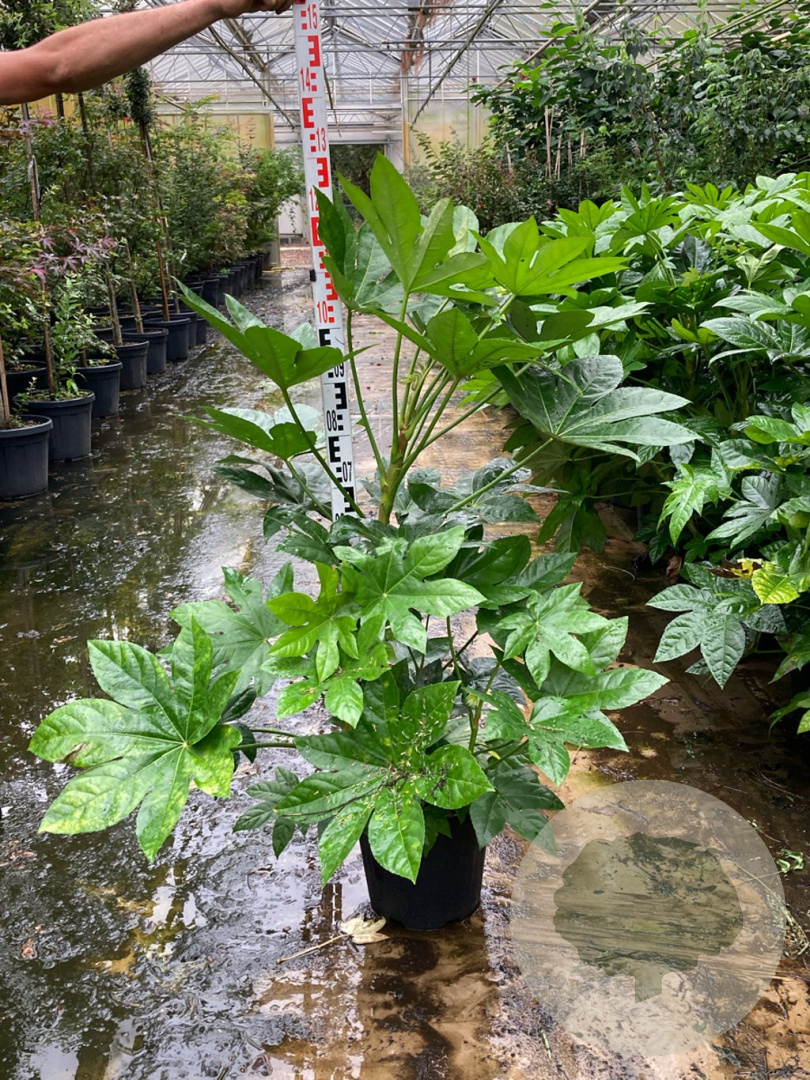 | Toelichting | De Vingerplant (Fatsia japonica) is een prachtige groenblijvende plant met grote groene bladeren en witte bloemen in de herfst. Ideaal voor een halfschaduwrijke plek met zure en humusrijke grond. Bereikt een hoogte van 200 cm en bloeit in oktober en november. |