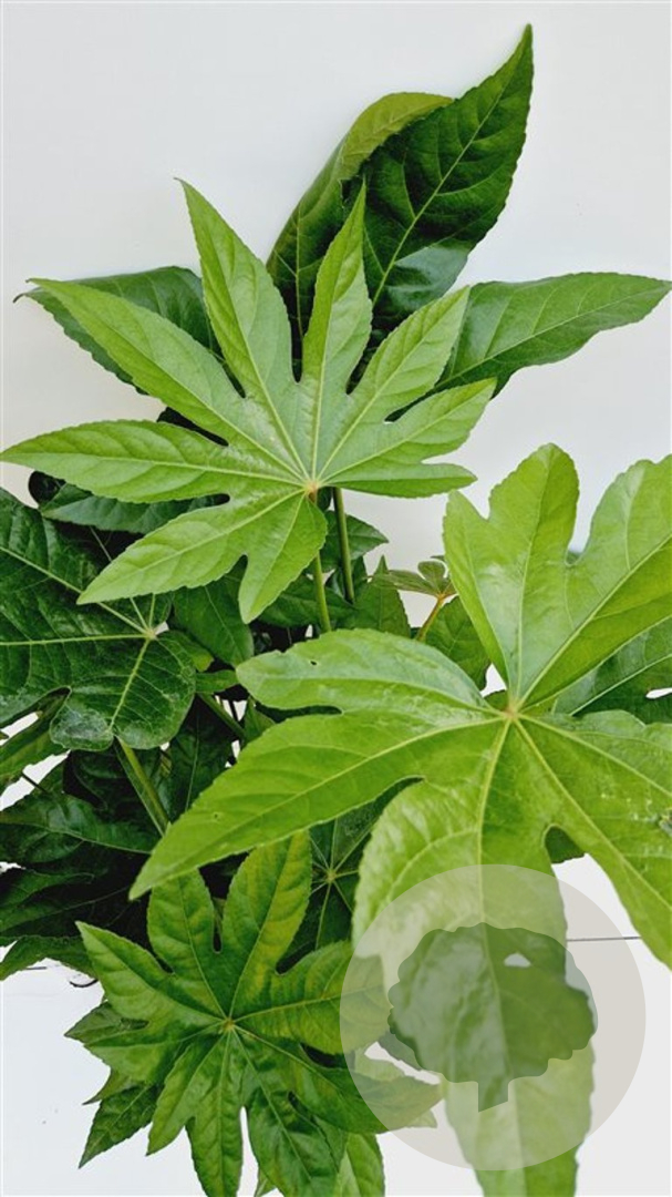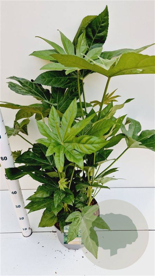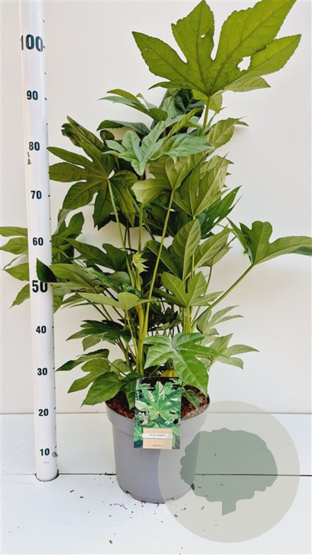 | Toelichting | De Vingerplant (Fatsia japonica) is een prachtige groenblijvende plant met grote groene bladeren en witte bloemen in de herfst. Ideaal voor een halfschaduwrijke plek met zure en humusrijke grond. Bereikt een hoogte van 200 cm en bloeit in oktober en november. |