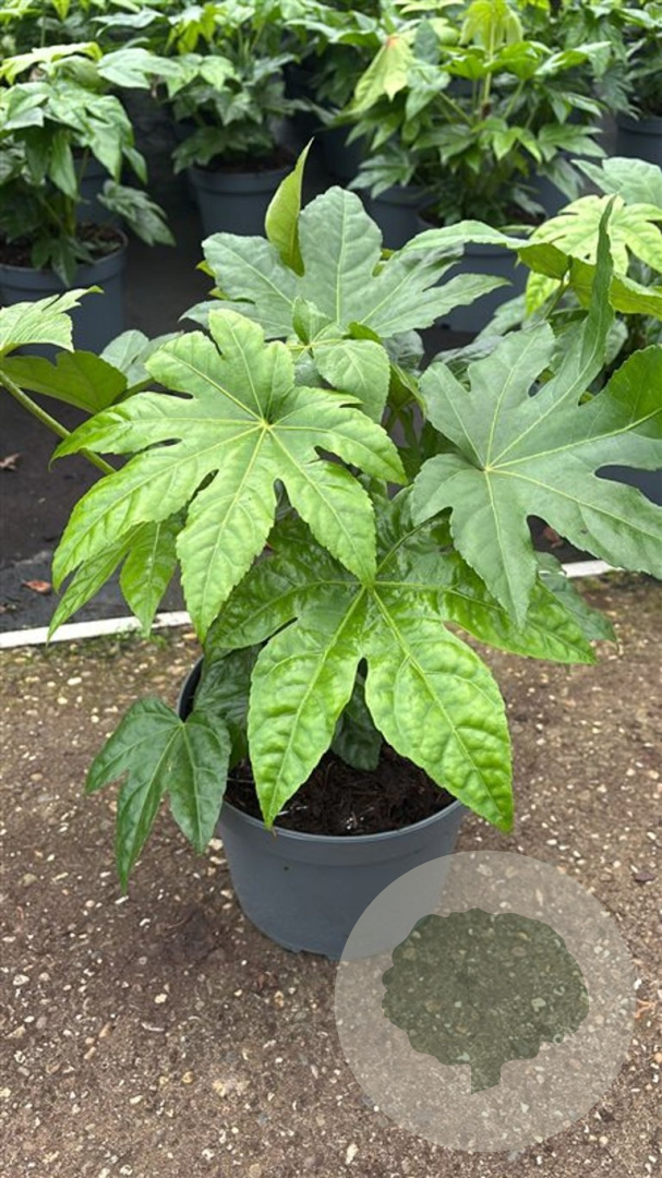 | Toelichting | De Vingerplant (Fatsia japonica) is een prachtige groenblijvende plant met grote groene bladeren en witte bloemen in de herfst. Ideaal voor een halfschaduwrijke plek met zure en humusrijke grond. Bereikt een hoogte van 200 cm en bloeit in oktober en november. |