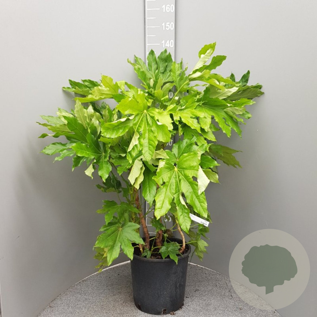 | Toelichting | De Vingerplant (Fatsia japonica) is een prachtige groenblijvende plant met grote groene bladeren en witte bloemen in de herfst. Ideaal voor een halfschaduwrijke plek met zure en humusrijke grond. Bereikt een hoogte van 200 cm en bloeit in oktober en november. |