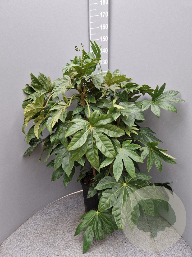 | Toelichting | De Vingerplant (Fatsia japonica) is een prachtige groenblijvende plant met grote groene bladeren en witte bloemen in de herfst. Ideaal voor een halfschaduwrijke plek met zure en humusrijke grond. Bereikt een hoogte van 200 cm en bloeit in oktober en november. |