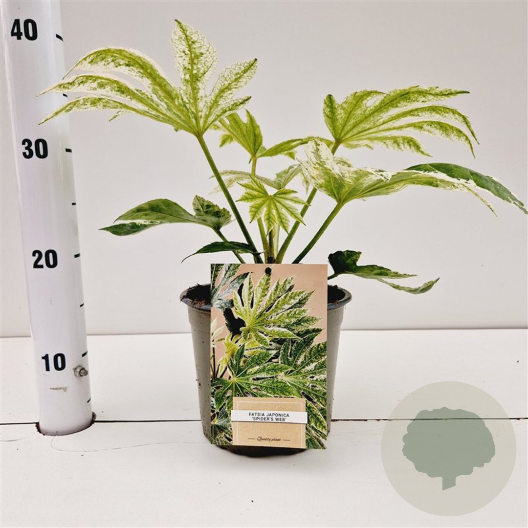 | Toelichting | De Vingerplant (Fatsia japonica 'Spider's Web') is een prachtige bladplant met groen/wit gevlekt blad. In de herfst bloeit deze plant met witte bloemen. Ideaal voor een plekje in de halfschaduw op humusrijke grond. |