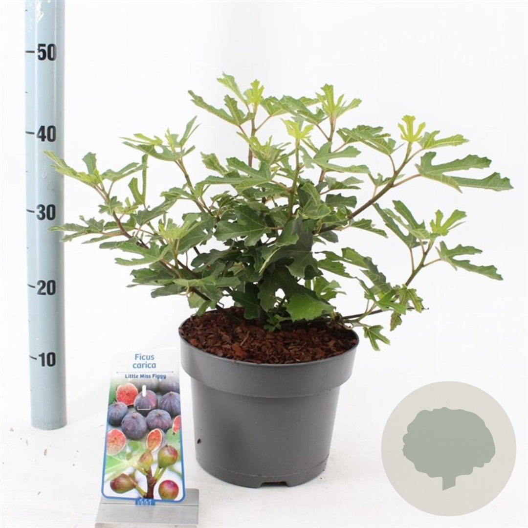 | Toelichting | De Vijgenboom (Ficus car. Little Miss Figgy) is een compacte plant met donkergroen blad. Deze plant gedijt goed in zon en halfschaduw op goede tuingrond. Hoogte tot 150 cm. Bloeit niet, maar is een mooie toevoeging aan je tuin vanwege het blad. |