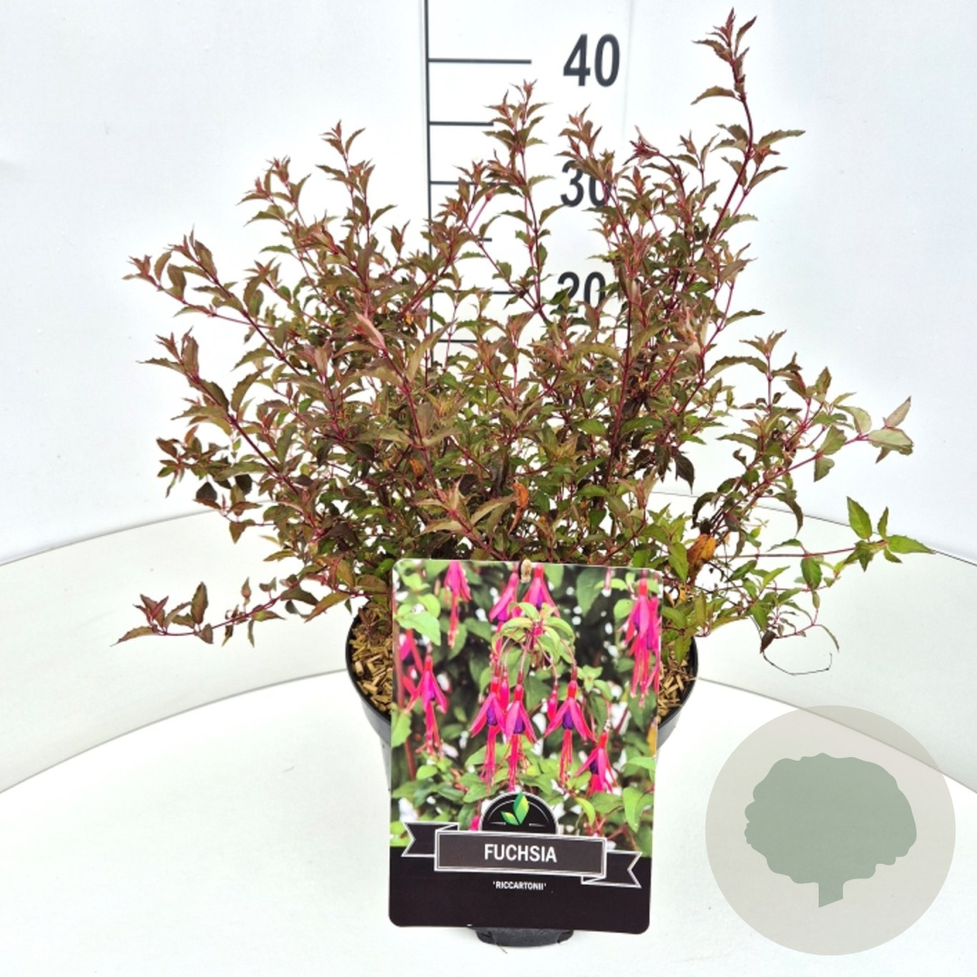 | Toelichting | Fuchsia 'Riccartonii' is een prachtige plant met rode en paarse bloemen die bloeien van juni tot oktober. Deze fuchsia gedijt het beste in de halfschaduw op zure en humusrijke grond. De plant kan een hoogte bereiken van 100 cm. |