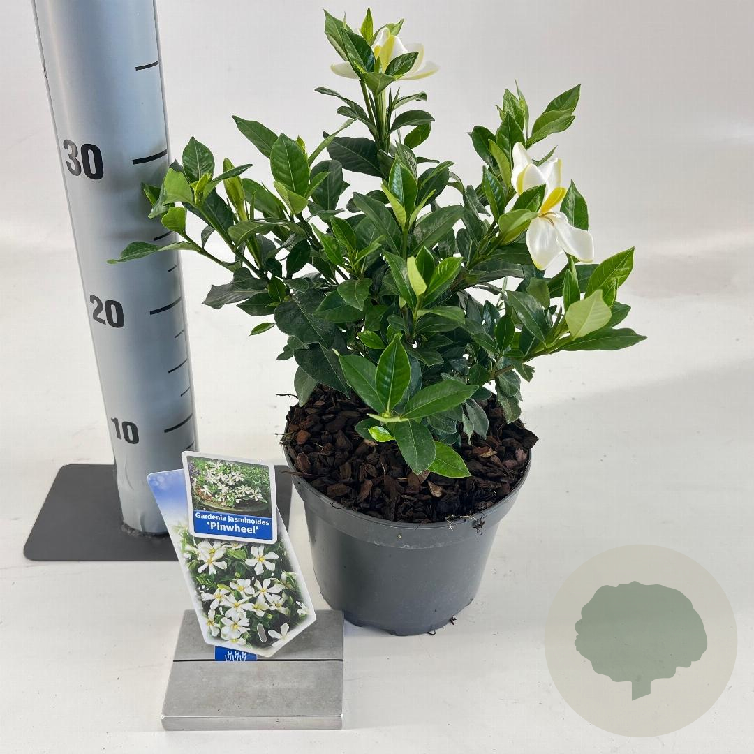 | Toelichting | De Kaapse jasmijn is een prachtige, groenblijvende struik met heerlijk geurende witte bloemen. Deze plant bloeit van mei tot september en gedijt goed in zon en halfschaduw op zure, humusrijke grond. Perfect voor een sfeervolle tuin! |