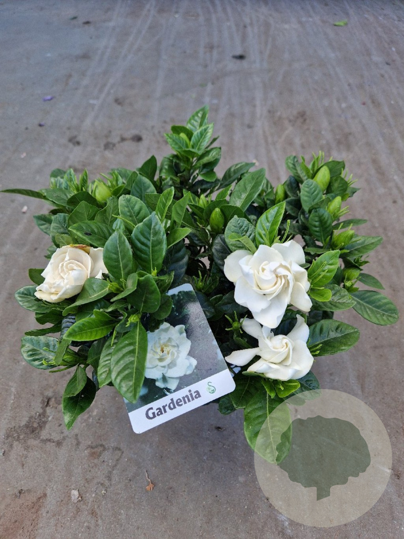 | Toelichting | De Kaapse jasmijn is een prachtige struik met glanzende donkergroene bladeren en heerlijk geurende witte bloemen. Bloeiend van mei tot september, gedijt deze plant het beste in zon of halfschaduw op zure, humusrijke grond. |