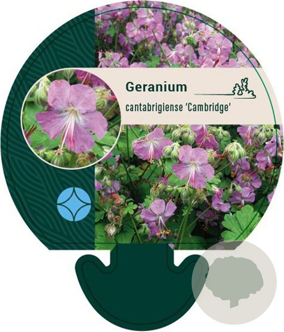 | Toelichting | De Geranium cant. 'Cambridge', ook bekend als Ooievaarsbek, bloeit van mei tot september met paarse bloemen. Deze plant wordt ongeveer 30 cm hoog en gedijt goed in zonnige tot halfschaduwrijke gebieden met neutrale, goede tuingrond. |