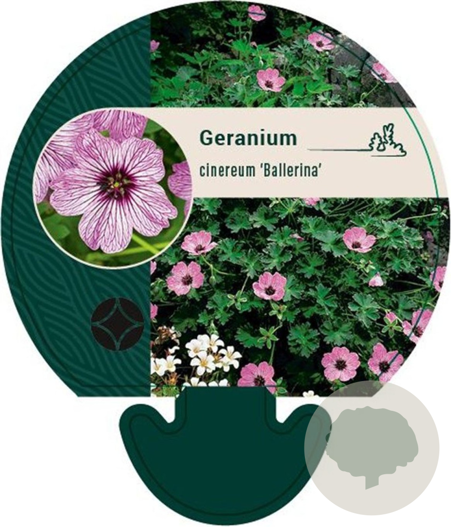 | Toelichting | De Geranium cin. 'Ballerina', ook wel Ooievaarsbek genoemd, bloeit van mei tot september met prachtige roze bloemen. Deze plant wordt ongeveer 30 cm hoog en gedijt goed in zonnige tot halfschaduwrijke plekken met lichte klei en neutrale grond. |