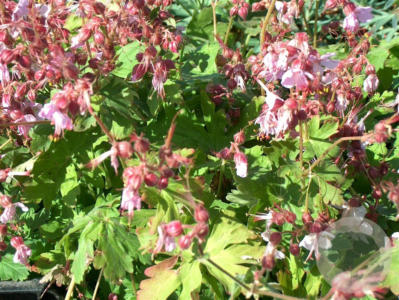 | Toelichting | De Geranium macr. 'Ingwersen's Var.' is een prachtige plant met paarse bloemen en groen blad. Deze ooievaarsbek bloeit van mei tot september en gedijt goed in zon en halfschaduw op lichte klei, neutrale of humusrijke grond. |