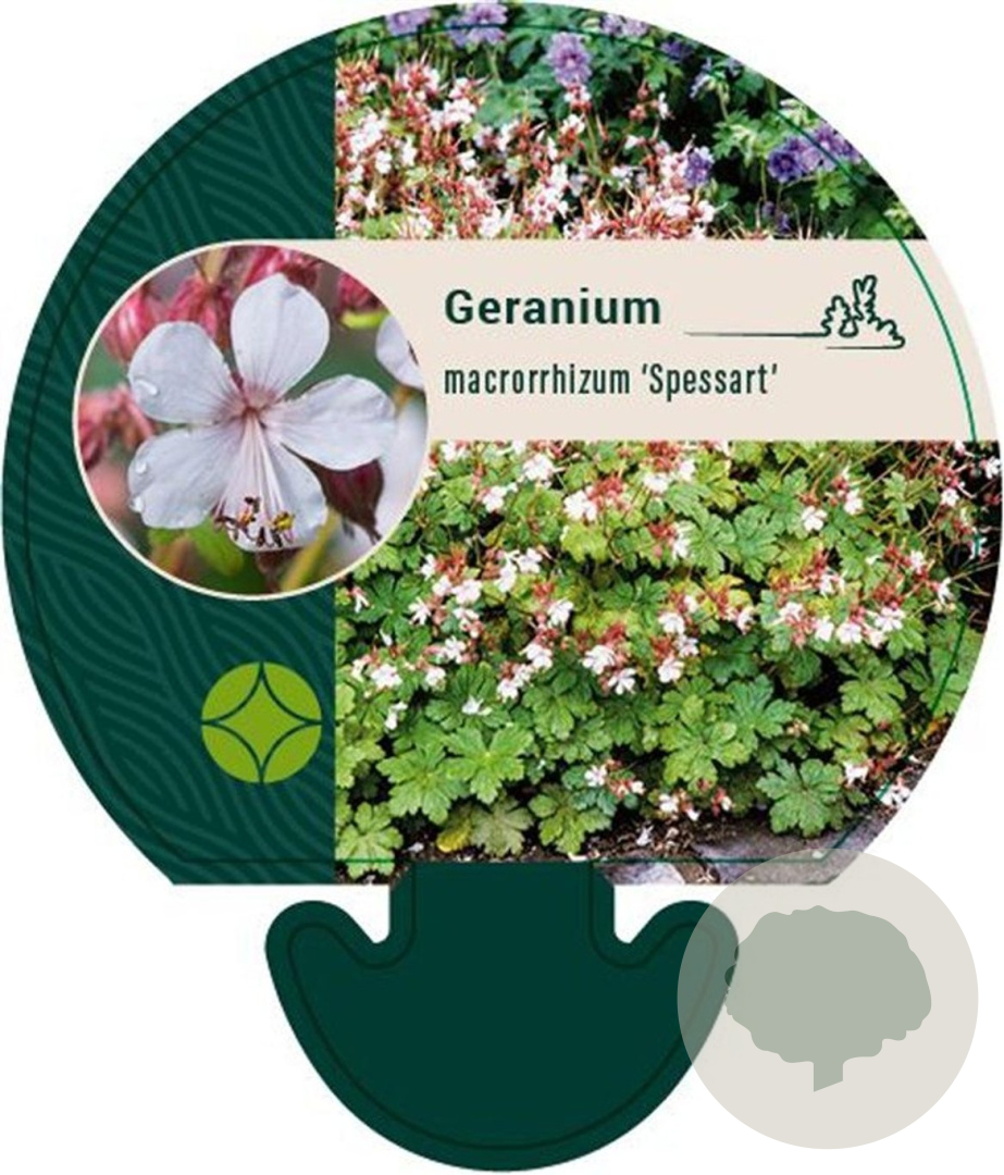 | Toelichting | De Geranium macr. 'Spessart', ook bekend als Ooievaarsbek, is een prachtige plant met paarse bloemen en groen blad. Deze plant bloeit van mei tot september en gedijt goed in zonnige tot halfschaduwrijke plekken met lichte klei, neutrale grond en goede tuingrond. |