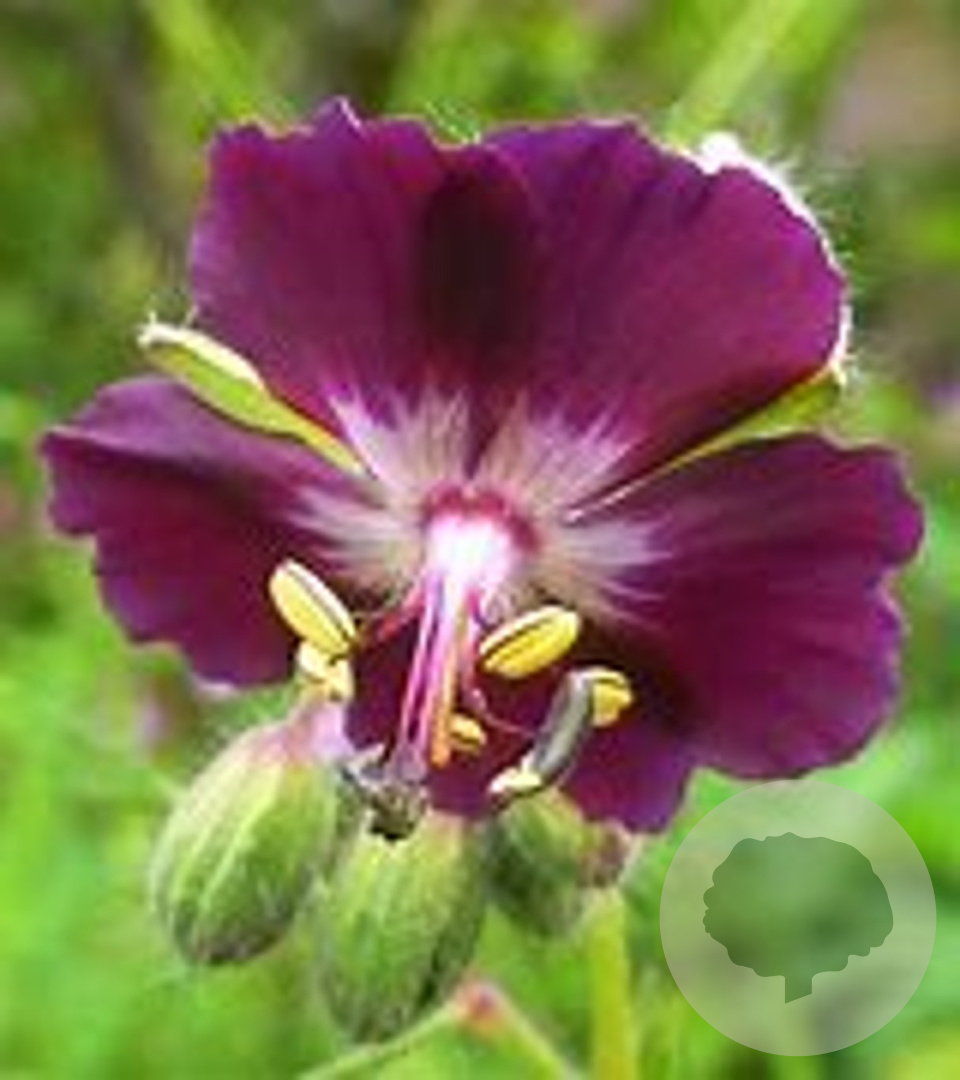 | Toelichting | De Rouwgeranium, Geranium phaeum 'Mourning Widow', bloeit in de periode van mei tot juli met donkerpaarse bloemen. Deze vaste plant wordt ongeveer 60 cm hoog en gedijt goed in de halfschaduw op lichte klei, neutrale of humusrijke grond. |
