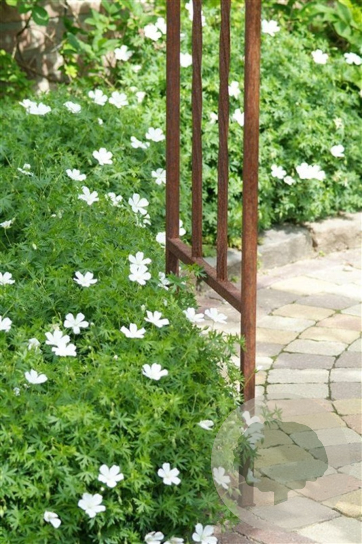 | Toelichting | De Ooievaarsbek (Geranium sang. 'Album') is een prachtige vaste plant met witte bloemen en groen blad. Deze plant bloeit van mei tot augustus en gedijt goed in zon en halfschaduw op lichte klei, neutrale grond of goede tuingrond. |