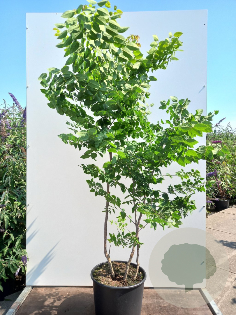| Toelichting | De Gymnocladus dioica, ook wel bekend als de Valse Christusdoorn, is een imposante boom met witte bloemen in de periode mei-juni. Met zijn volwassen hoogte van 1500 cm is het een prachtige toevoeging aan elke tuin. Deze boom gedijt het beste in zon en halfschaduw op neutrale, goede tuingrond met humus. |