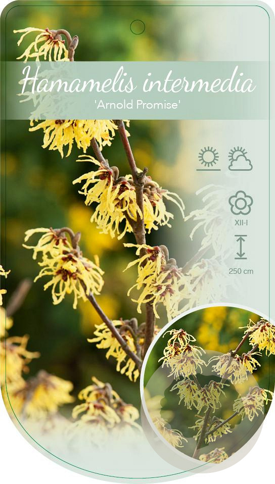 | Toelichting | De Toverhazelaar (Hamamelis int. 'Arnold Promise') is een prachtige heester met geurende gele bloemen in de late winter en vroege lente. Deze plant gedijt het beste in zure, humusrijke grond op een zonnige tot halfschaduwrijke standplaats. |