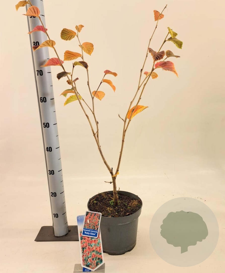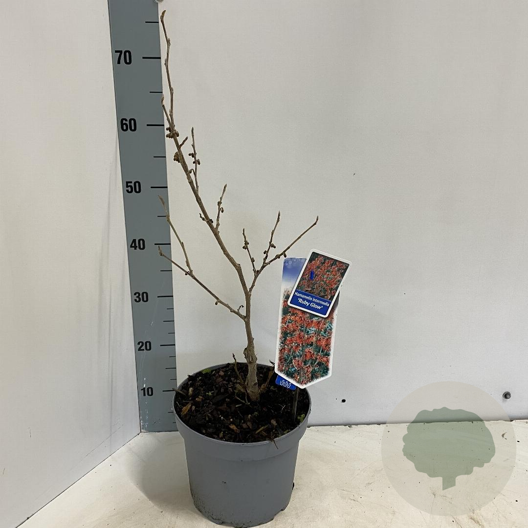 | Toelichting | De Toverhazelaar (Hamamelis) 'Ruby Glow' is een prachtige struik met rode bloemen die bloeien in de late winter tot het vroege voorjaar. De struik wordt ongeveer 200 cm hoog en gedijt het beste in zure, humusrijke grond op een zonnige tot halfschaduwrijke standplaats. |