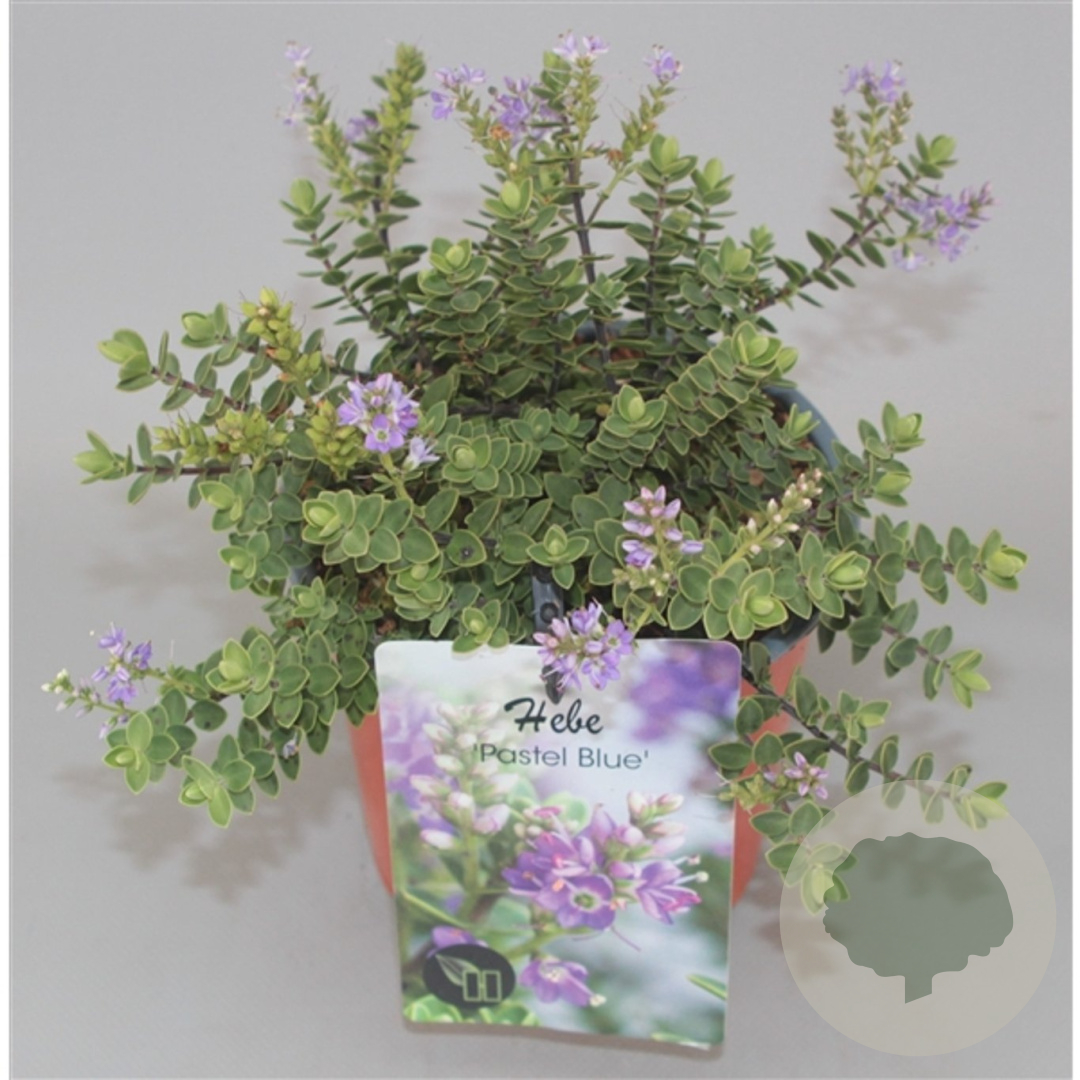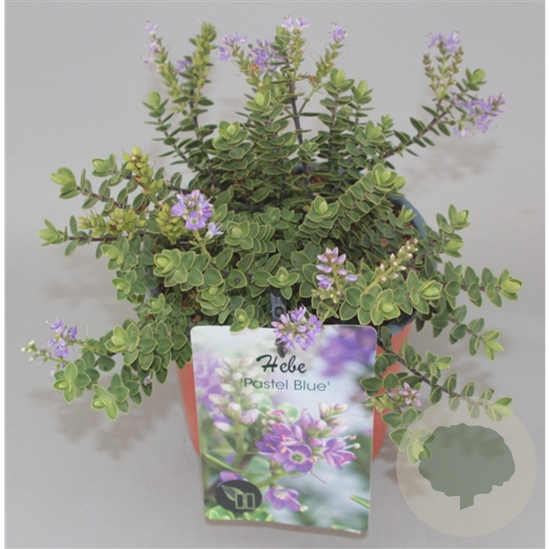 | Toelichting | Struikveronica 'Pastel Blue' is een compacte heester met paarse bloemen en groen blad. Bloeit van juni tot augustus en gedijt goed in zon en halfschaduw op zand- of neutrale grond. |
