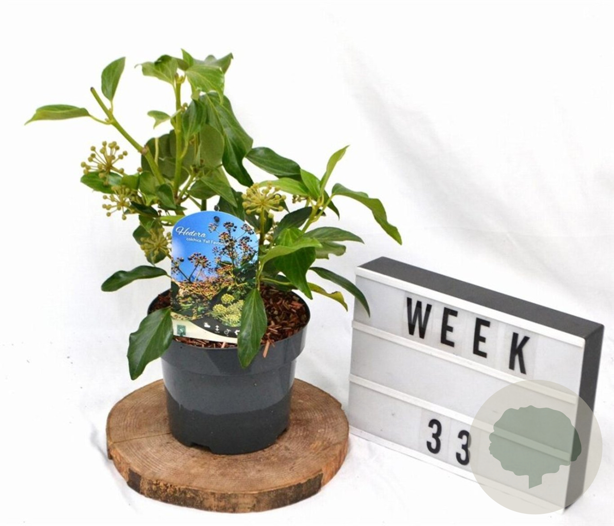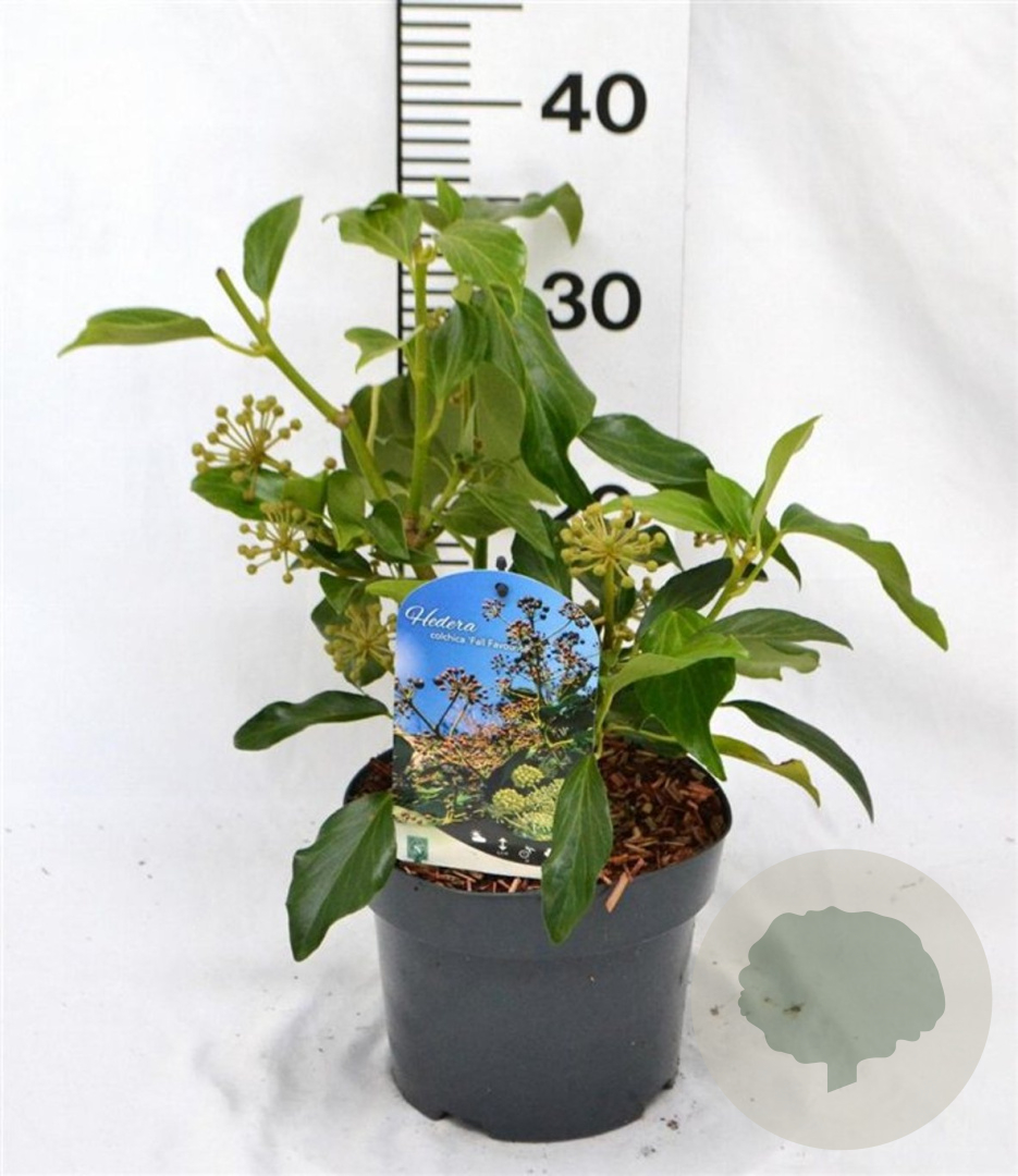 Toelichting | De Kaukasische klimop (Hedera colchica 'Fall Favourite') is een prachtige klimplant met donkergroene bladeren. Hij bloeit in de herfst met groene bloemen en wordt ongeveer 200 cm hoog. Deze plant gedijt goed in zon en halfschaduw op zandgrond, lichte klei of neutrale grond. |