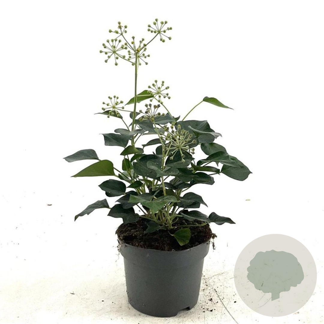| Toelichting | De Klimop (Hedera hel. 'Arborescens') is een veelzijdige klimplant met donkergroene bladeren die zowel in de zon, halfschaduw als schaduw gedijt. Met een volwassen hoogte van 300 cm en groene bloemen in de herfst, is het een ideale plant voor diverse grondsoorten. |