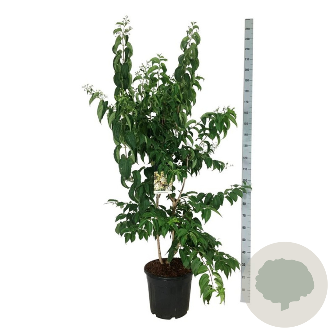 | Toelichting | De Heptacodium miconioides, ook wel bekend als de Zevenzonenboom, is een prachtige boom met witte bloemen die bloeien in augustus en september. Deze boom gedijt het beste in de zon of halfschaduw op lichte klei, neutrale of voedselrijke grond. |