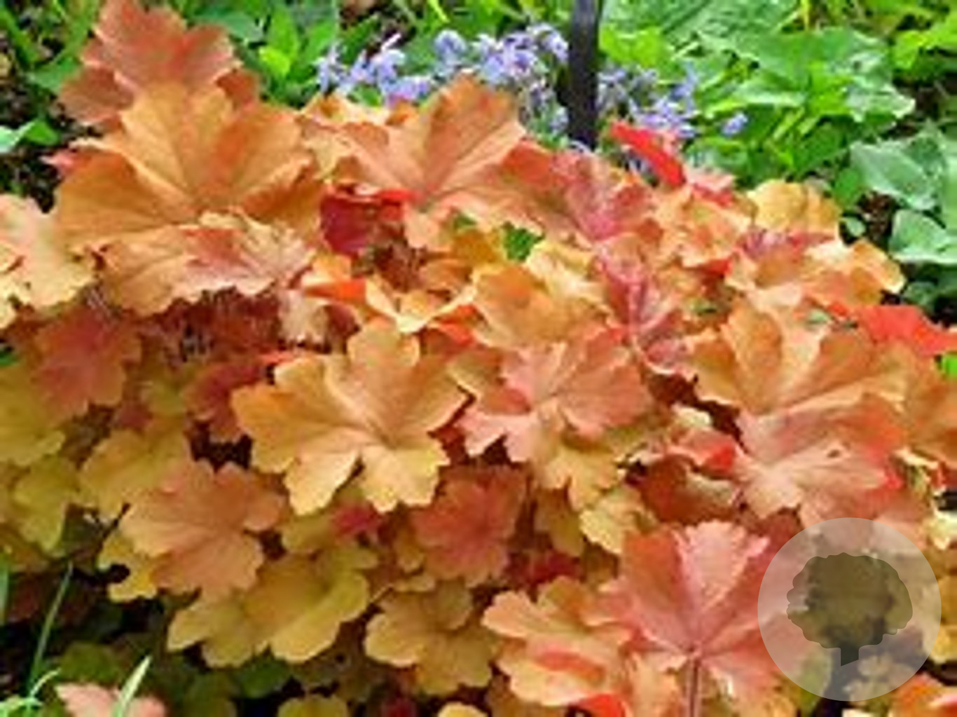 | Toelichting | Heuchera 'Caramel', ook bekend als Purperklokje, is een prachtige vaste plant met opvallend oranje blad en witte bloemen. Deze plant bloeit van juni tot augustus en gedijt goed in zon en halfschaduw op neutrale, humusrijke grond. |