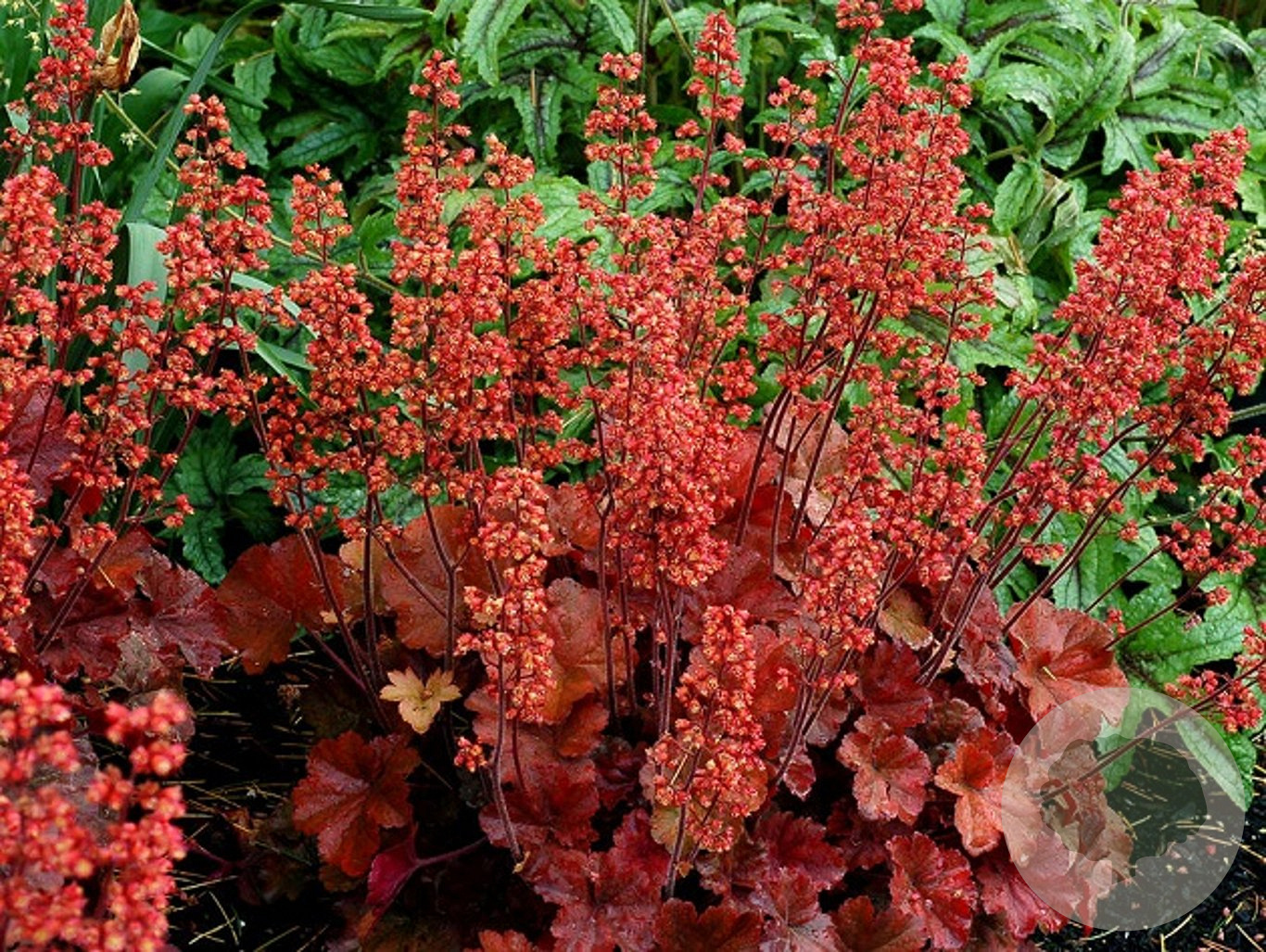 | Toelichting | Heuchera 'Cherry Cola', ook bekend als Purperklokje, is een prachtige vaste plant met roze bloemen en purperkleurig blad. Bloeiend van juni tot augustus, gedijt deze plant het beste in de zon of halfschaduw op neutrale of humusrijke grond. Bereikt een hoogte van 30 cm. |
