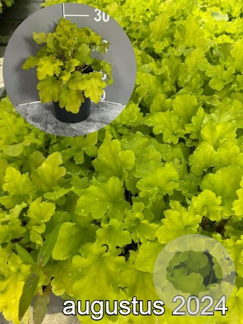 | Toelichting | Purperklokje 'Lime Marmalade' is een prachtige vaste plant met groen blad en witte bloemen. Deze heester bloeit van juni tot augustus en gedijt goed in de halfschaduw op humusrijke grond. Ideaal voor een kleurrijke border! |