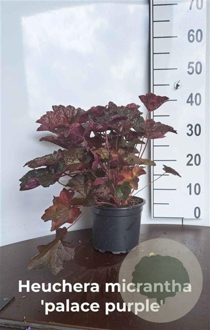 | Toelichting | Het Purperklokje (Heuchera m. 'Palace Purple') is een prachtige vaste plant met opvallend purperkleurig blad en witte bloemen in juni en juli. Perfect voor een halfschaduwrijke plek met neutrale, goede tuingrond. Bereikt een hoogte van 30 cm. |