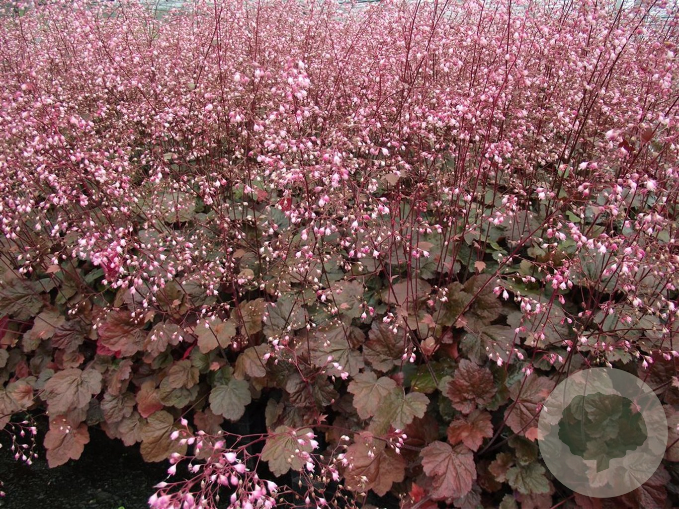 ToelichtingHeuchera 'Rachel', ook bekend als Purperklokje, heeft prachtig purperkleurig blad en roze bloemen. Deze vaste plant bloeit van juni tot augustus en gedijt goed in zon en halfschaduw op neutrale en humusrijke grond. Bereikt een hoogte van 30 cm.