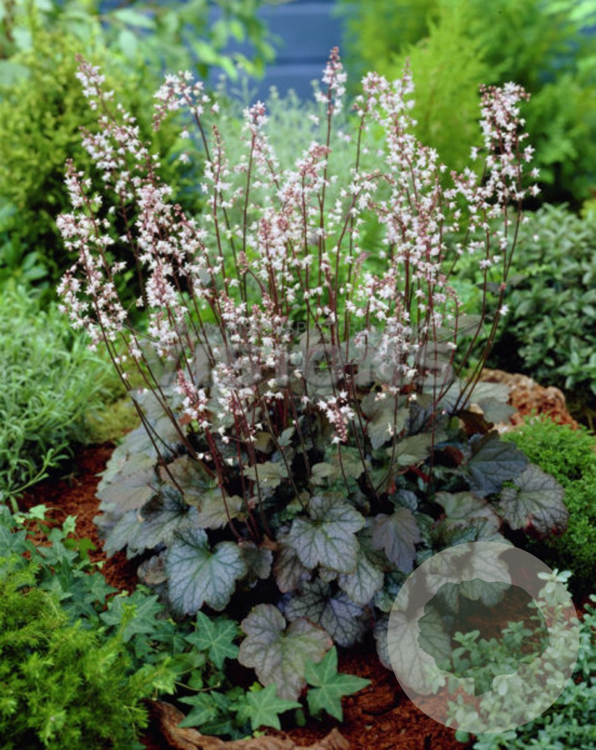 | Toelichting | Heucherella 'Quicksilver', ook bekend als Purperklokje, heeft prachtig zilvergrijs blad en witte bloemen in de periode mei - juni. Deze plant gedijt goed in de halfschaduw op neutrale tot humusrijke grond. |