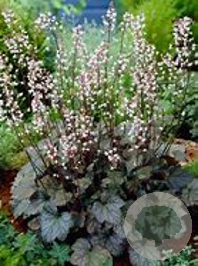 | Toelichting | Heucherella 'Quicksilver', ook bekend als Purperklokje, heeft prachtig zilvergrijs blad en witte bloemen in de periode mei - juni. Deze plant gedijt goed in de halfschaduw op neutrale tot humusrijke grond. |