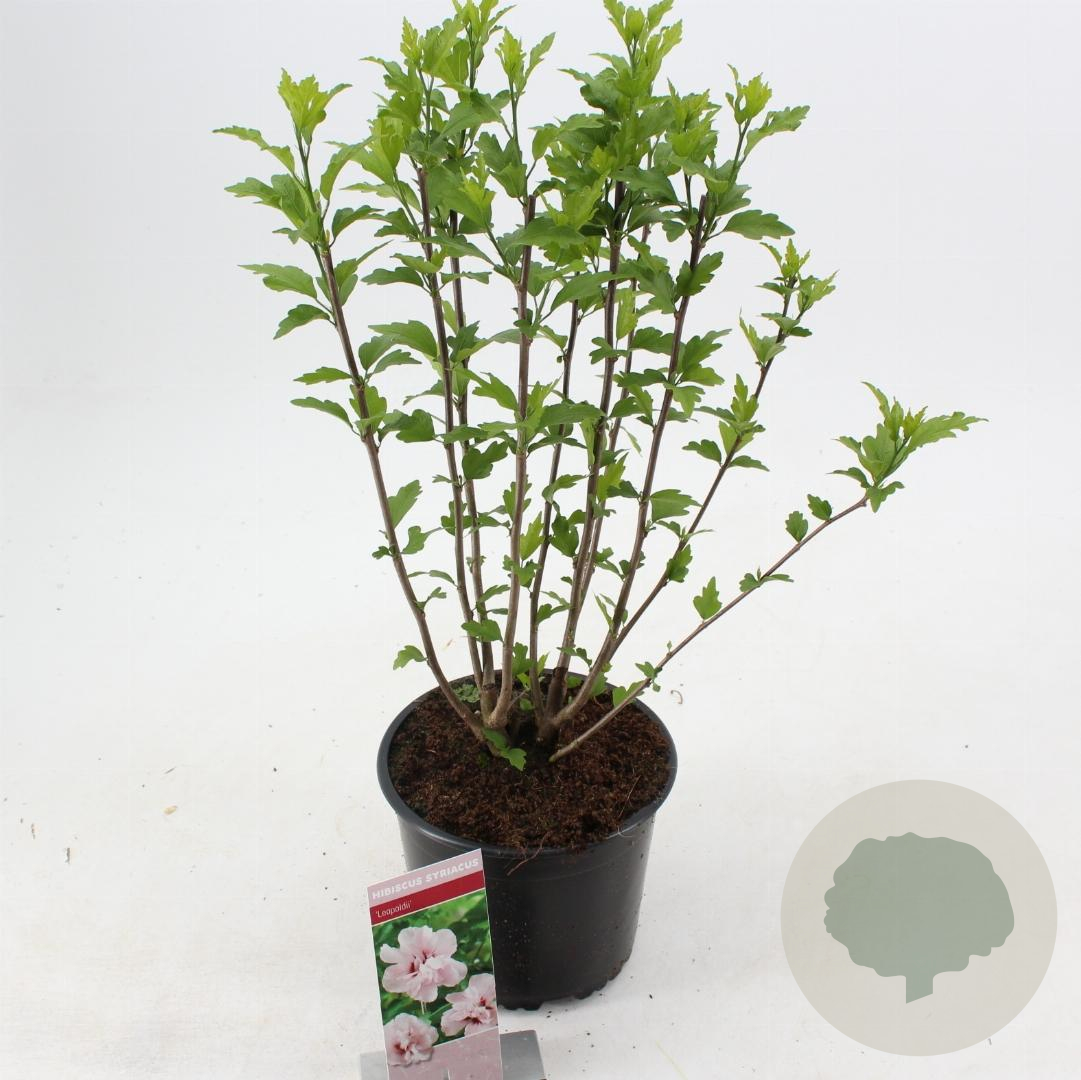 | Toelichting | De Hibiscus syr. 'Leopoldii' is een prachtige struik met rode bloemen en groen blad. Deze hibiscus bloeit van juli tot september en gedijt het beste in de zon of halfschaduw op lichte klei, neutrale of voedselrijke grond. |