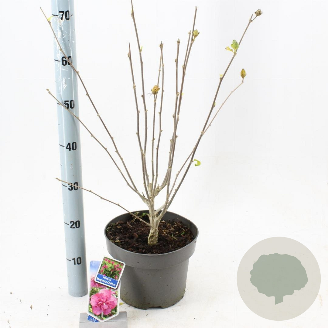 | Toelichting | De Hibiscus syr. Magenta Chiffon is een prachtige sierheester met magentakleurige bloemen die bloeien van juli tot september. Deze Hibiscus gedijt het beste in de zon of halfschaduw op zandgrond, lichte klei of neutrale grond. Een aanwinst voor elke tuin! |