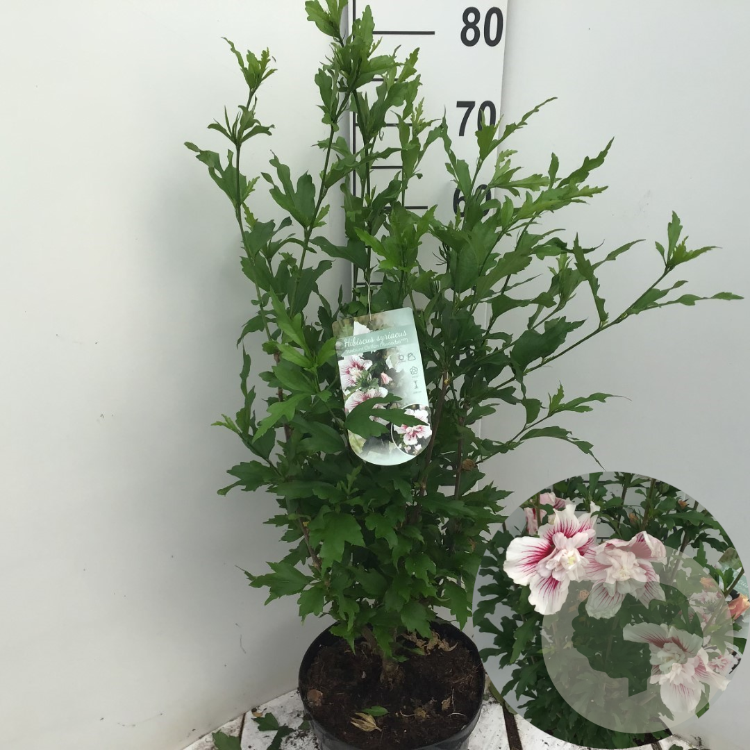 | Toelichting | Hibiscus is een prachtige struik met roze en witte bloemen die bloeien van juli tot september. Deze plant gedijt het beste in de zon of halfschaduw op zandgrond, lichte klei of neutrale grond. Perfect voor een kleurrijke tuin! |