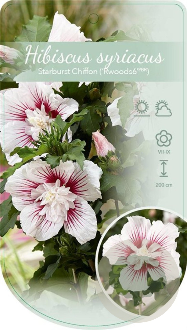 | Toelichting | Hibiscus is een prachtige struik met roze en witte bloemen die bloeien van juli tot september. Deze plant gedijt het beste in de zon of halfschaduw op zandgrond, lichte klei of neutrale grond. Perfect voor een kleurrijke tuin! |