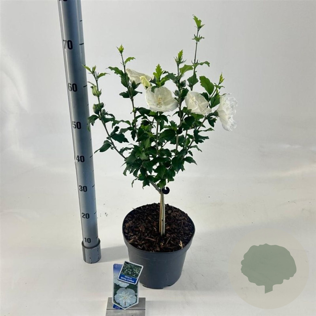 | Toelichting | De Hibiscus is een prachtige plant met witte bloemen die bloeien van juli tot september. Deze plant wordt ongeveer 150 cm hoog en gedijt het beste in zonnige tot halfschaduwrijke standplaatsen met goede tuingrond en neutrale, humusrijke grond. |