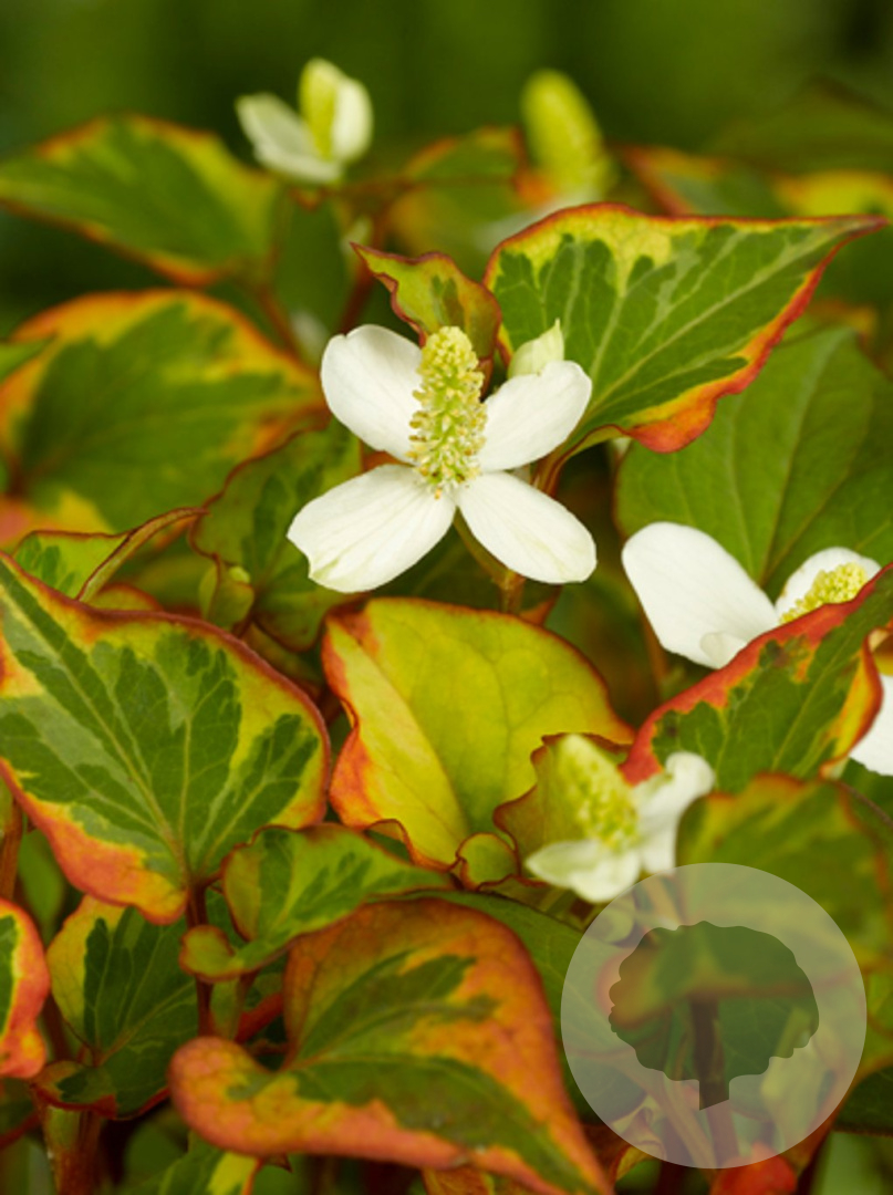 ToelichtingDe Moerasanemoon (Houttuynia cordata 'Chameleon') is een prachtige bodembedekker met opvallend gekleurd blad in groen, rood en geel. De bloemen bloeien in de zomermaanden wit en geel. Perfect voor vochtige, zure grond in zon en halfschaduw.
