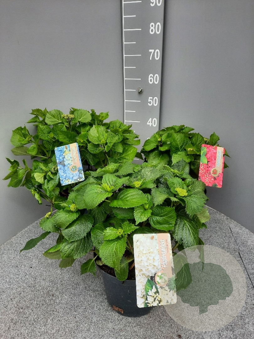 | Toelichting | De Hortensia (Hydrangea macrophylla) is een prachtige struik met grote bolvormige bloemen in de kleuren roze, blauw en wit. Bloeit van juni tot september en gedijt goed in halfschaduw op zure, humusrijke grond. Bereikt een hoogte van 100-150 cm. |