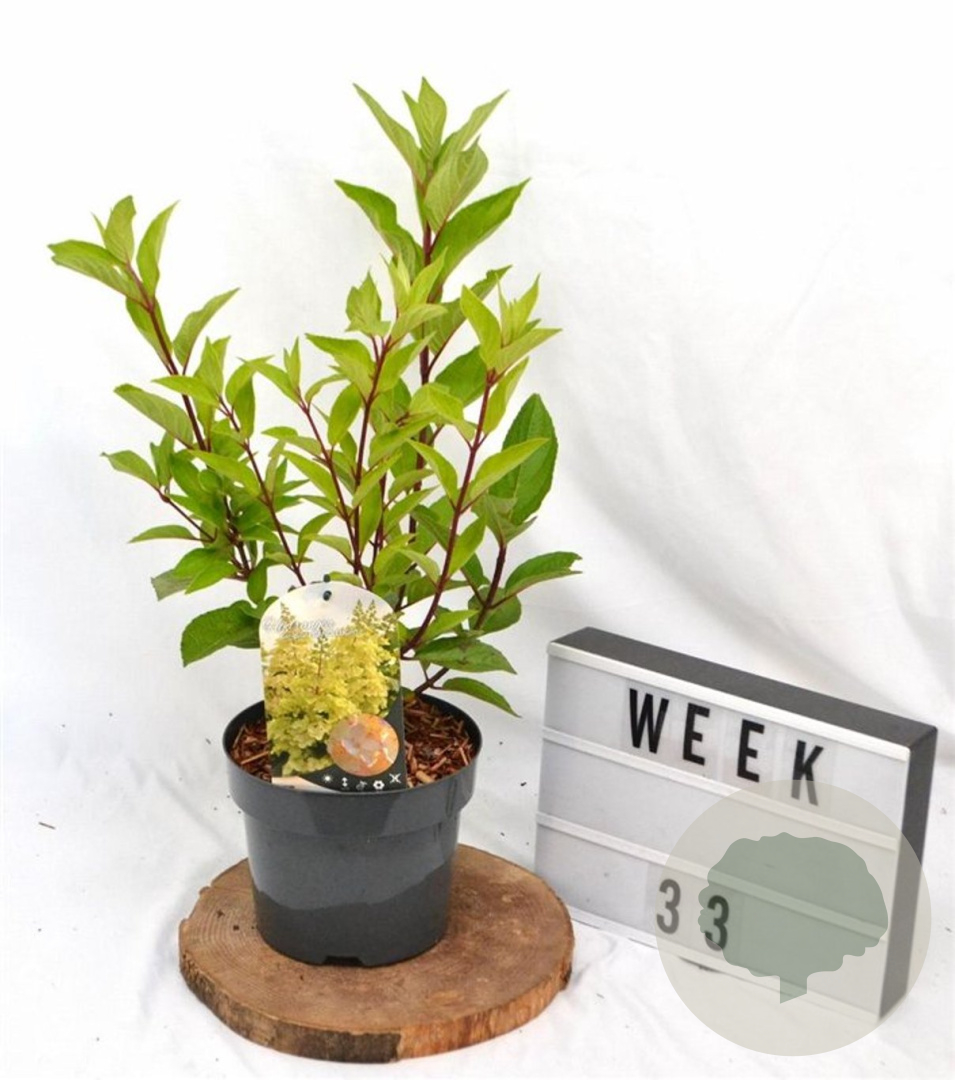 | Toelichting | De Pluimhortensia (Hydrangea pan. Candlelight) is een prachtige heester met witte en roze pluimen bloemen die bloeien van juli tot september. Deze hortensia gedijt goed in zonnige tot halfschaduwrijke plekken met neutrale grond en heeft een volwassen hoogte van 150 cm. |