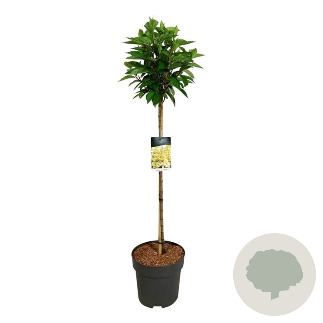| Toelichting | De Pluimhortensia (Hydrangea pan. Candlelight) is een prachtige heester met witte en roze pluimen bloemen die bloeien van juli tot september. Deze hortensia gedijt goed in zonnige tot halfschaduwrijke plekken met neutrale grond en heeft een volwassen hoogte van 150 cm. |