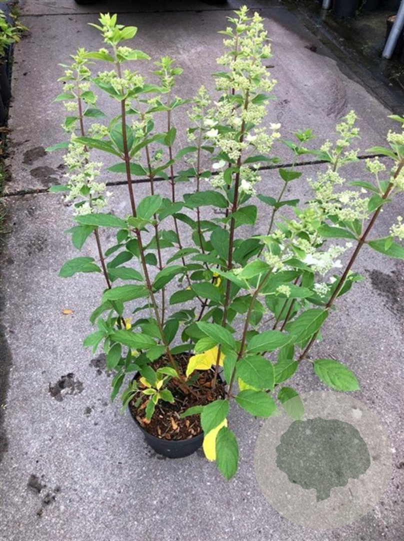 | Toelichting | De Pluimhortensia (Hydrangea paniculata 'Grandiflora') is een prachtige heester met grote witte pluimen bloemen die bloeien van juli tot september. Deze hortensia gedijt het beste in zon tot halfschaduw op zure, goede tuingrond met humus. Bereikt een hoogte van 200 cm. |