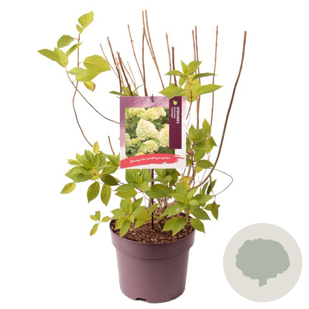 | Toelichting | De Hortensia 'Limelight' is een prachtige struik met opvallende groen-witte bloemen die bloeien van juli tot september. Deze hortensia gedijt het beste in zon of halfschaduw op zure, voedselrijke en humusrijke grond. Bereikt een hoogte van 150 cm. |