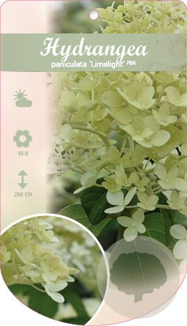 | Toelichting | De Hortensia 'Limelight' is een prachtige struik met opvallende groen-witte bloemen die bloeien van juli tot september. Deze hortensia gedijt het beste in zon of halfschaduw op zure, voedselrijke en humusrijke grond. Bereikt een hoogte van 150 cm. |