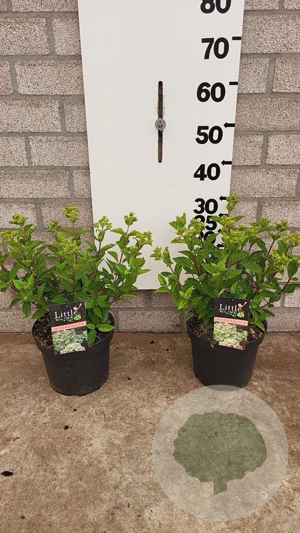 | Toelichting | De Pluimhortensia (Hydrangea pan. Little Lime) is een compacte struik met groene bloemen die langzaam verkleuren naar wit. Bloeit van juli tot september en gedijt goed in zon en halfschaduw op zure, humusrijke grond. |
