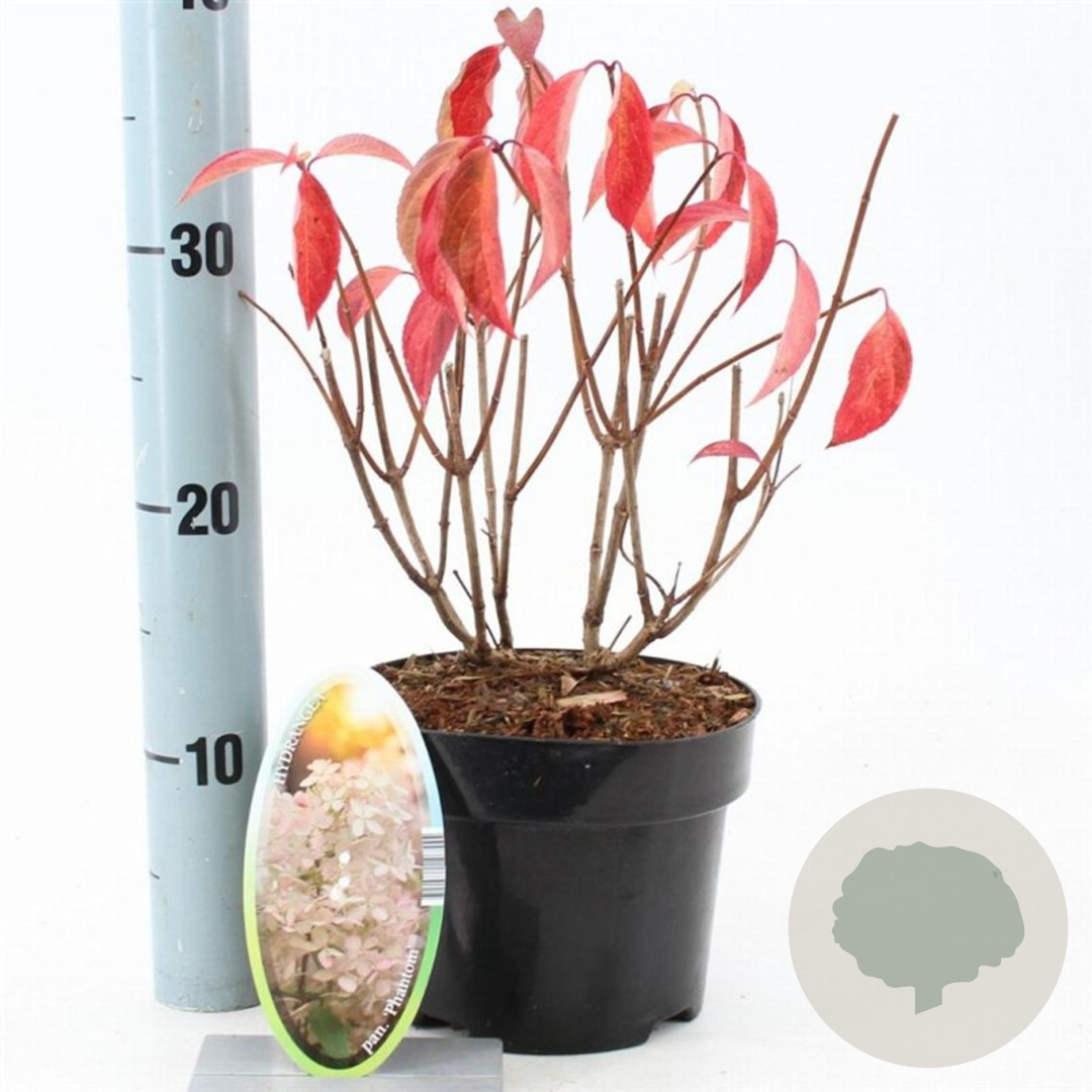 | Toelichting | De Pluimhortensia (Hydrangea paniculata 'Phantom') is een prachtige heester met grote witte pluimen bloemen die bloeien van juli tot september. Deze hortensia gedijt het beste in zon en halfschaduw op zure, humusrijke grond. Bereikt een volwassen hoogte van 200 cm. |