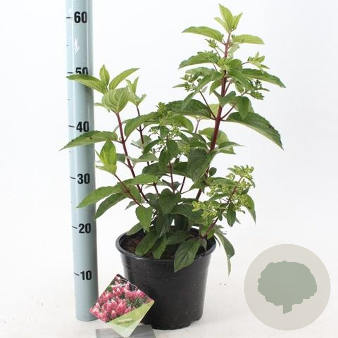 | Toelichting | De Pluimhortensia (Hydrangea pan. Pinky Winky) is een prachtige sierheester met opvallende roze en witte bloempluimen. Deze hortensia bloeit van juli tot september en gedijt goed in zon en halfschaduw op neutrale, voedselrijke grond. Een eyecatcher in elke tuin! |