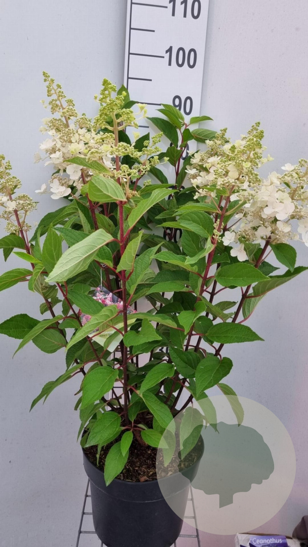| Toelichting | De Pluimhortensia (Hydrangea pan. Vanille-Fraise) is een prachtige heester met witte bloemen die langzaam verkleuren naar roze. Deze hortensia bloeit van juli tot september en gedijt goed in zon en halfschaduw op zandgrond, lichte klei of neutrale grond. |