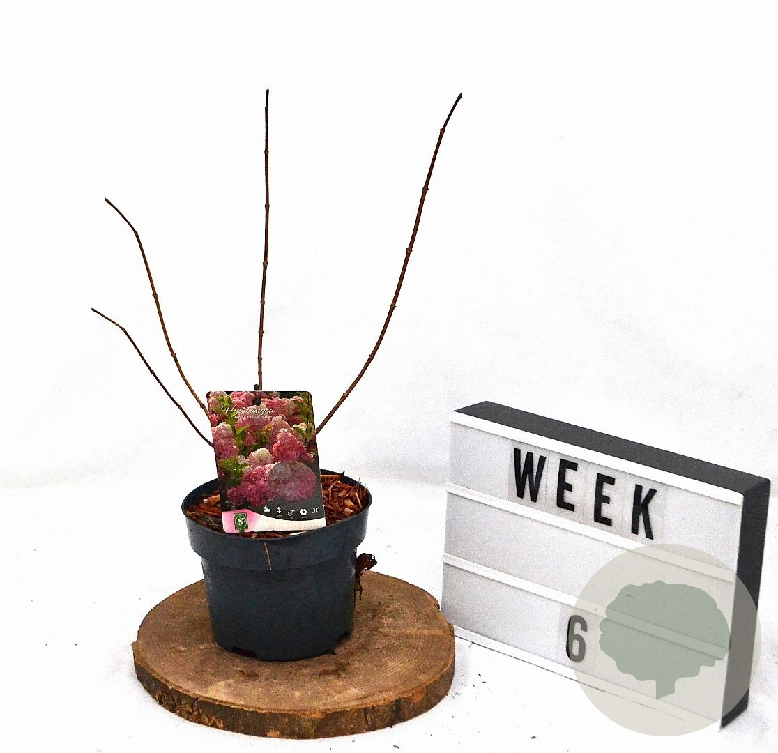 | Toelichting | De Pluimhortensia (Hydrangea pan. Vanille-Fraise) is een prachtige heester met witte bloemen die langzaam verkleuren naar roze. Deze hortensia bloeit van juli tot september en gedijt goed in zon en halfschaduw op zandgrond, lichte klei of neutrale grond. |