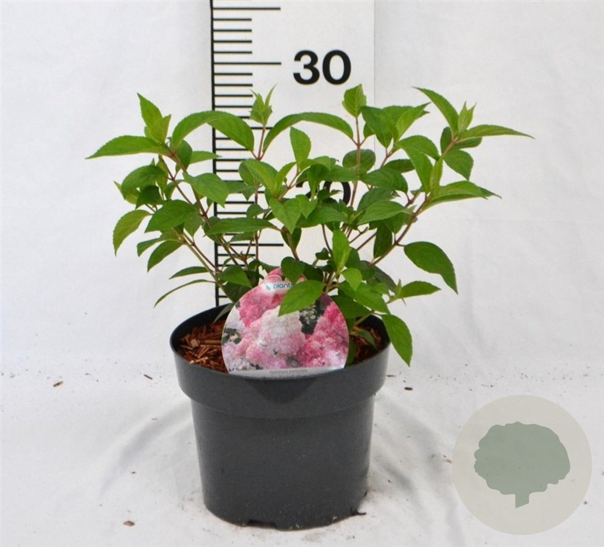 | Toelichting | De Pluimhortensia (Hydrangea pan. Vanille-Fraise) is een prachtige heester met witte bloemen die langzaam verkleuren naar roze. Deze hortensia bloeit van juli tot september en gedijt goed in zon en halfschaduw op zandgrond, lichte klei of neutrale grond. |