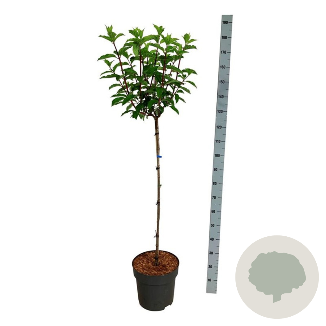 | Toelichting | De Pluimhortensia (Hydrangea pan. Vanille-Fraise) is een prachtige heester met witte bloemen die langzaam verkleuren naar roze. Deze hortensia bloeit van juli tot september en gedijt goed in zon en halfschaduw op zandgrond, lichte klei of neutrale grond. |