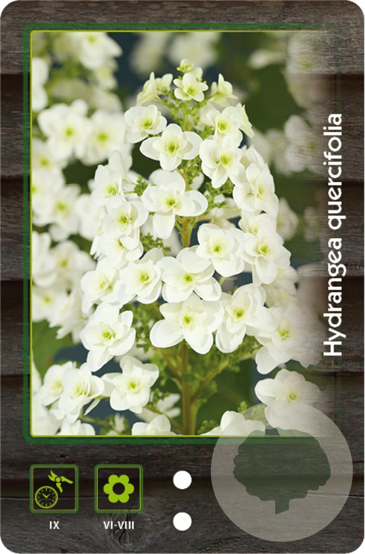 | Toelichting | De Eikenbladhortensia is een prachtige heester met opvallende witte bloemen en groen blad dat lijkt op eikenbladeren. Deze hortensia bloeit van juni tot september en gedijt het beste in halfschaduw op zure en humusrijke grond. |